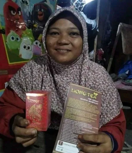 Kata dokter saya sakit VIRUS OTAK, Saya sudah berobat Ke rumah sakit, Disitu keadaan saya mulai membaik, bisa bekerja kembali, bisa momong anak, dulu anak saya masih umur 6 bulan pada saat anak saya umur 11 tahun, saya kambuh sampai saya tidak dapat berbicara. Alhamdulillah P Marjuki memberikan teh LIONGTEA, saya baru minum 3 gelas, keesokan harinya saya sedikit sedikit sudah bisa berbicara, 2-3 hari saya minum sampai habis setengah botol LIONGTEA, sayasudah bisa berbicara lancar dan tidak kambuh lagi