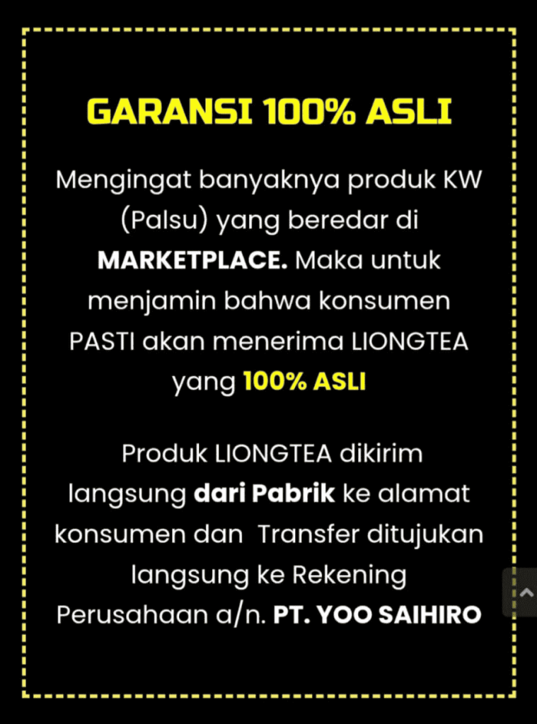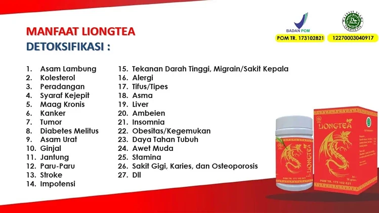 Saya sakit asam urat, saya hanya minum LIONGTEA selama 4 hari Alhamdullilah sekarang sudah sembuh. LIONGTEA memang Mantapp.